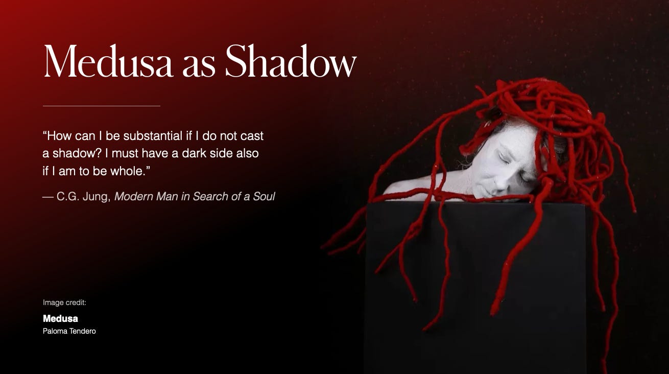 Medusa is, in many ways, the quintessential shadow figure. She represents the aspects of self our culture cannot easily tolerate – truths too raw to be neatly expressed, namely: feminine power, feminine sexuality, feminine rage.