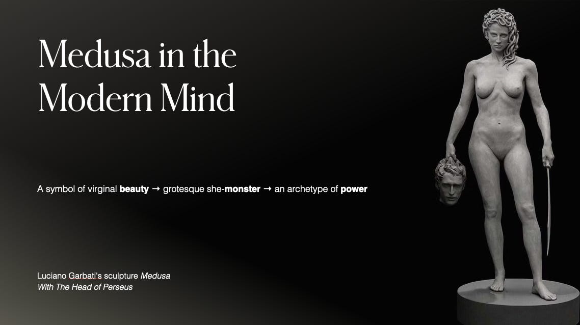 Luciano Garbati's Medusa statue in New York, for example, stands as a powerful symbol of the #MeToo movement, particularly among survivors of sexual assault. It reimagines the Medusa myth by portraying her as a figure holding the head of Perseus, inverting the traditional narrative where Perseus is the hero who slays the monster.